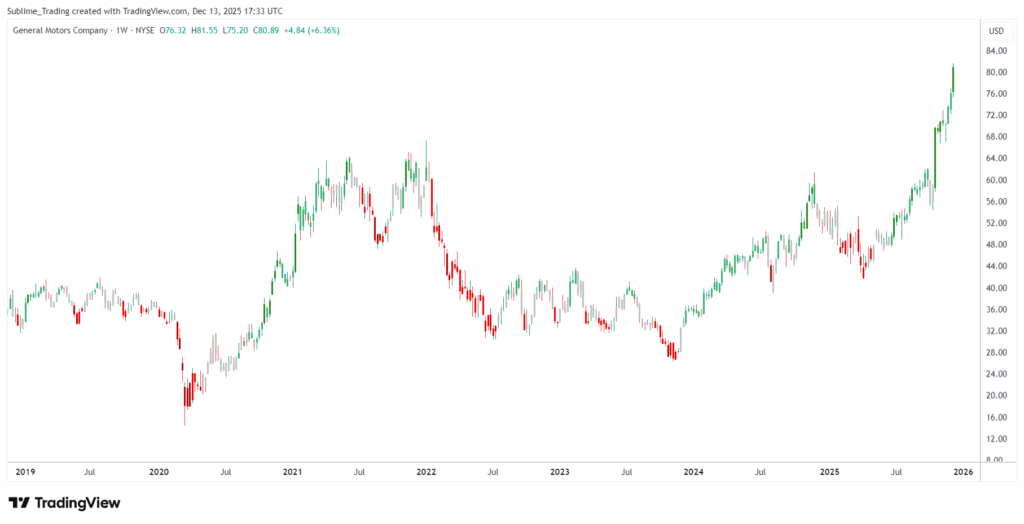 General Motors has made an impressive move after spending years in a consolidation phase. Breaking above its previous all-time high of $67, set back in January 2022, GM has finally shaken off that multi-year sideways trend.