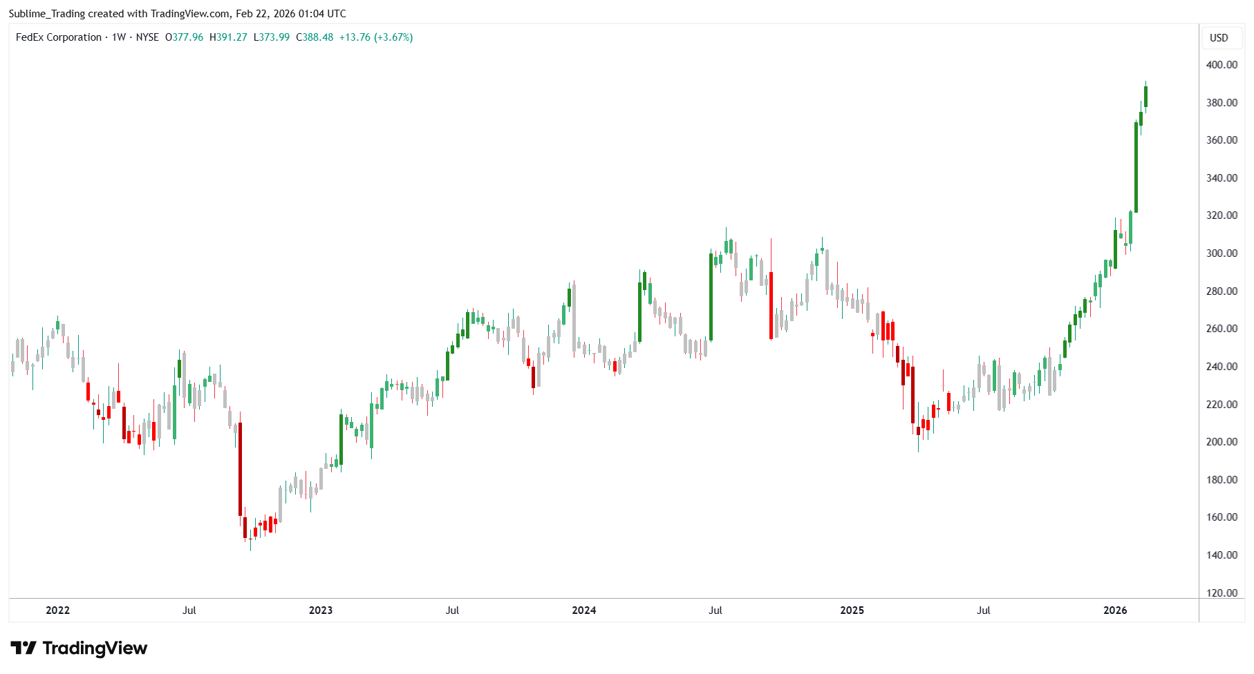 From May 2021 to January 2026, FedEx was stuck in a range, bouncing between $141 and $319. That’s nearly five years of going nowhere. January finally brought a breakout, but it was cautious enough that some wondered if it might be a fake breakout.